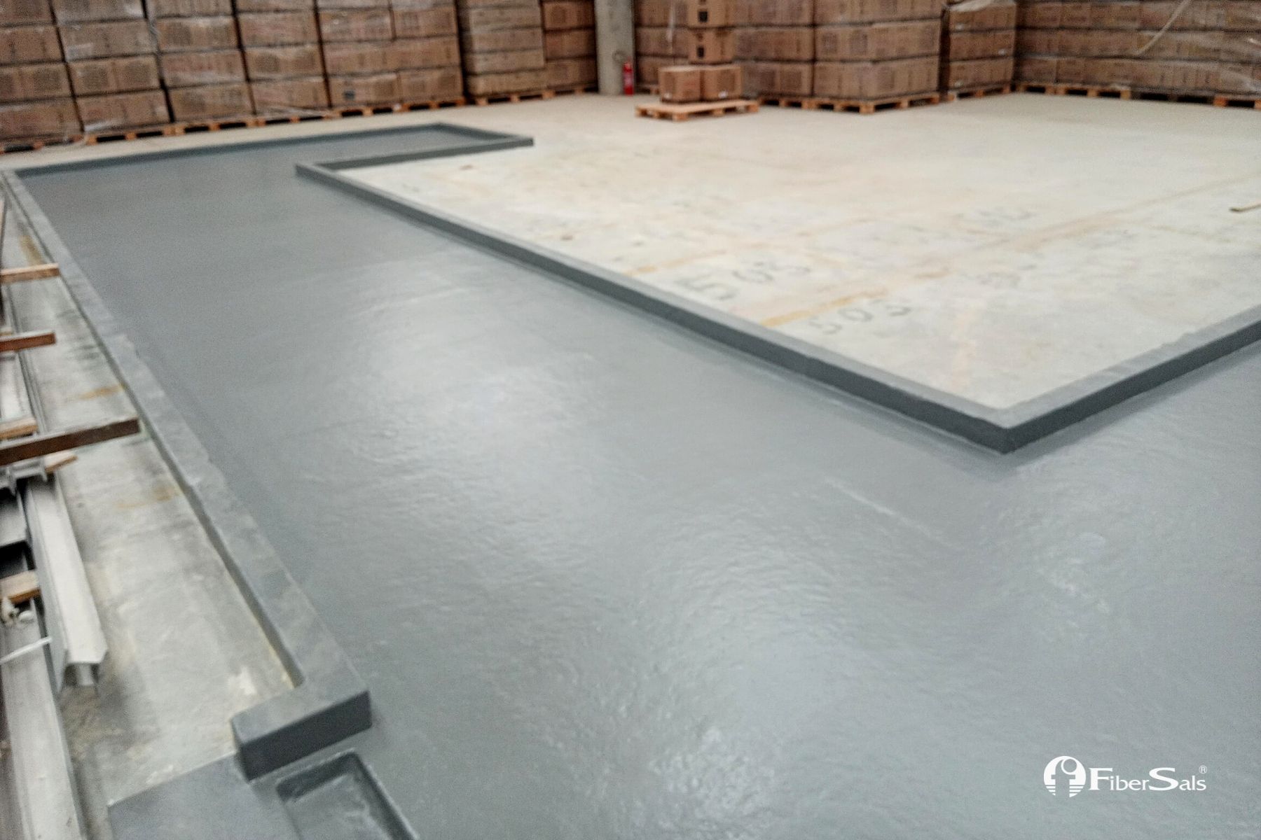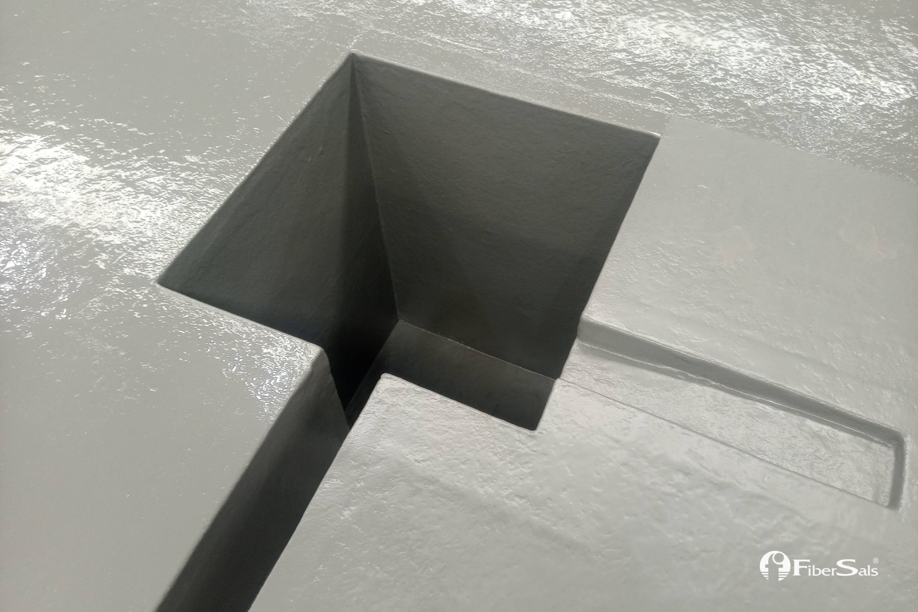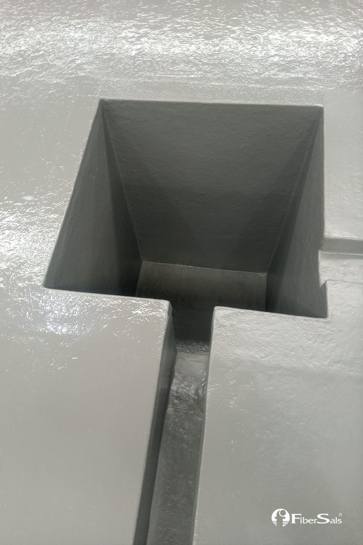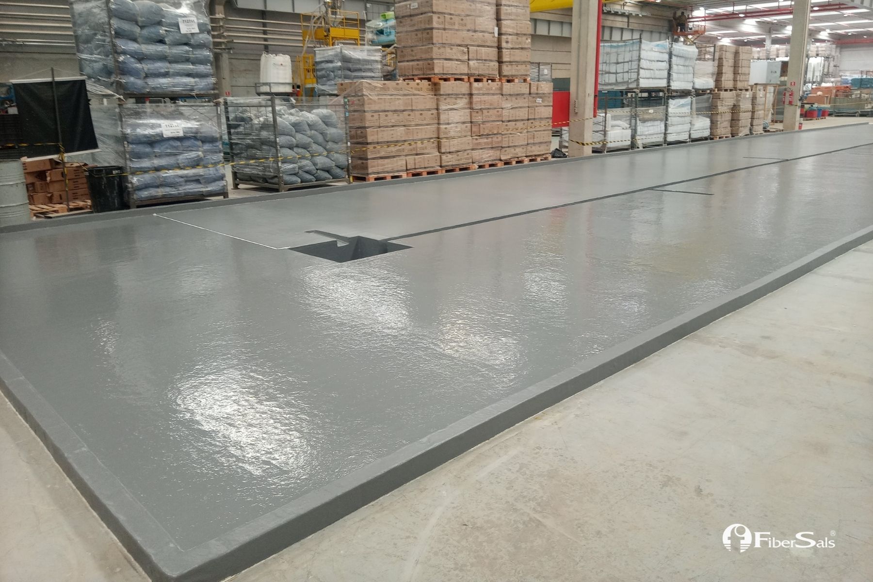 Realizamos a impermeabilização deste tanque de contenção química sem quebrar o piso. Foi utilizado o Sistema Fibersals 100% Poliéster para áreas industriais, dimensionado às necessidades do cliente.