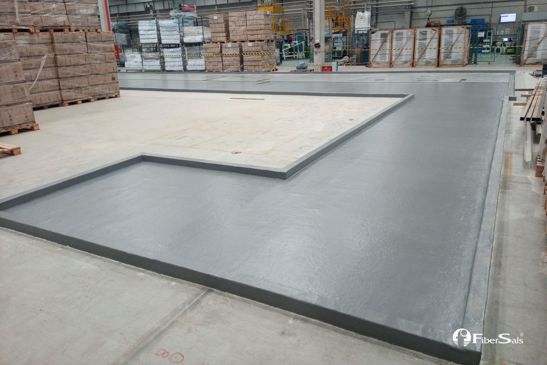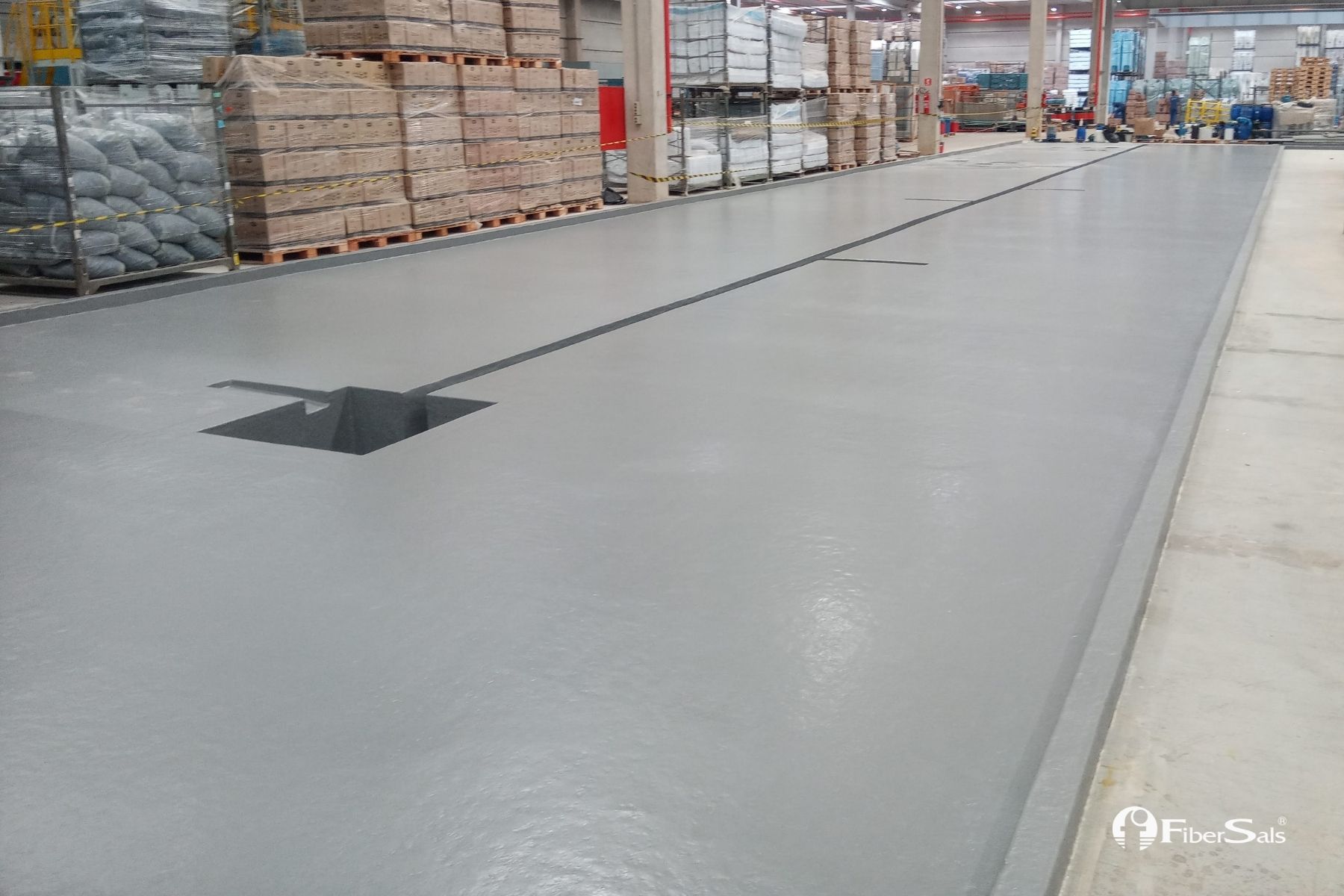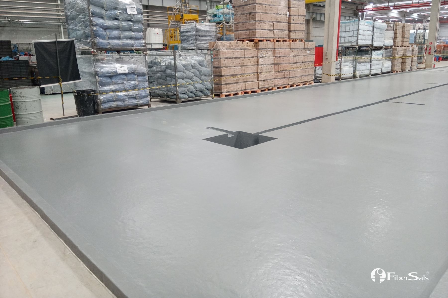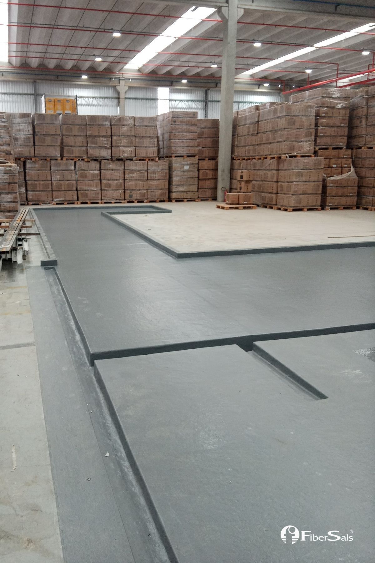 Realizamos a impermeabilização deste tanque de contenção química sem quebrar o piso. Foi utilizado o Sistema Fibersals 100% Poliéster para áreas industriais, dimensionado às necessidades do cliente.