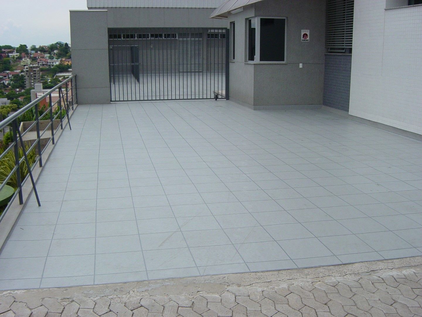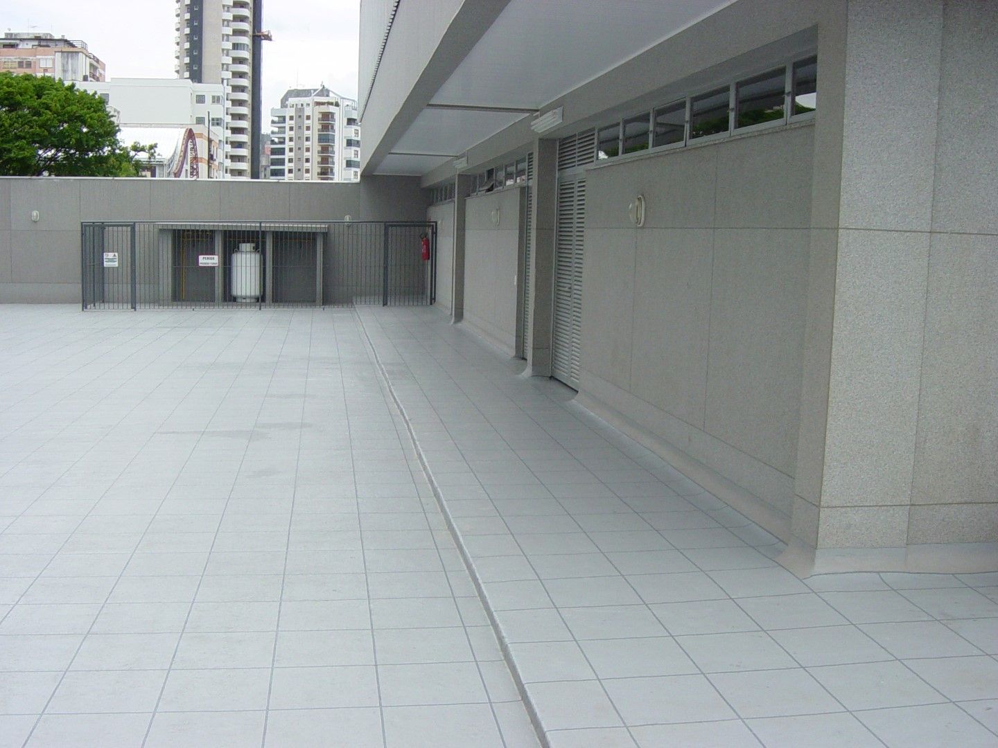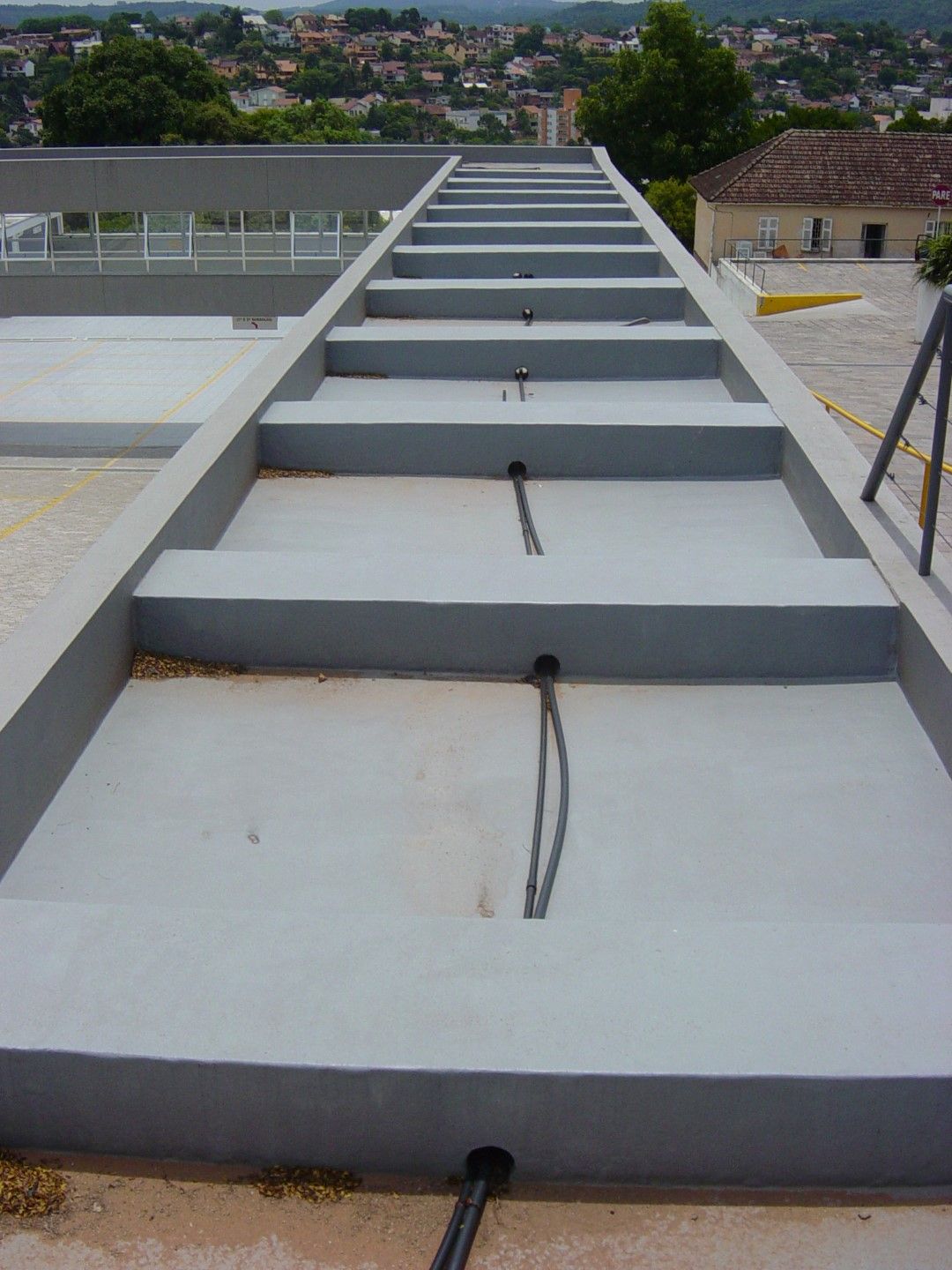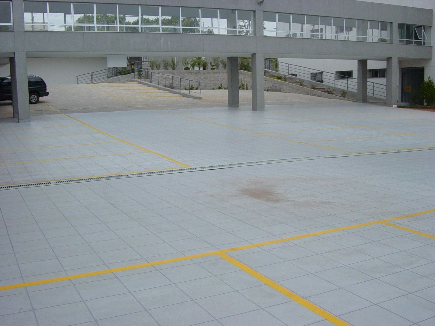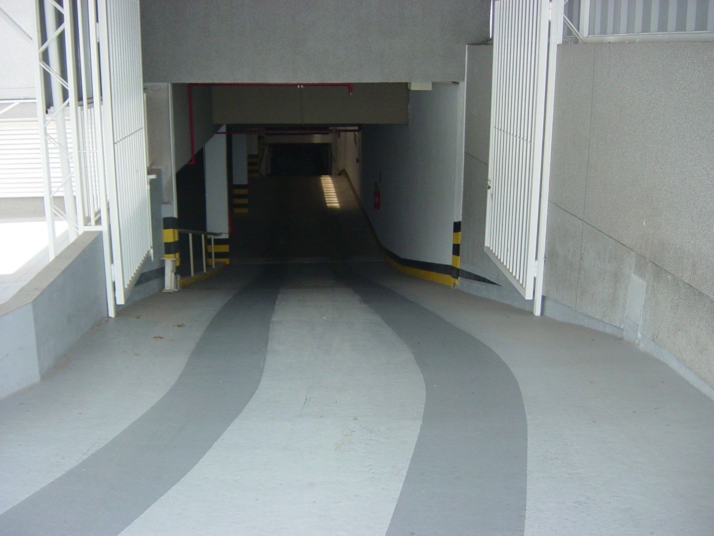 Rampa de garagem também foi impermeabilizada em tons de cinza