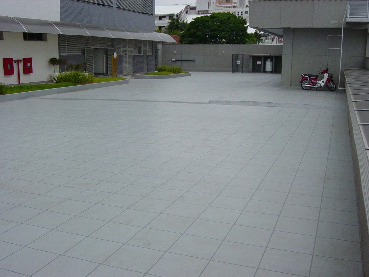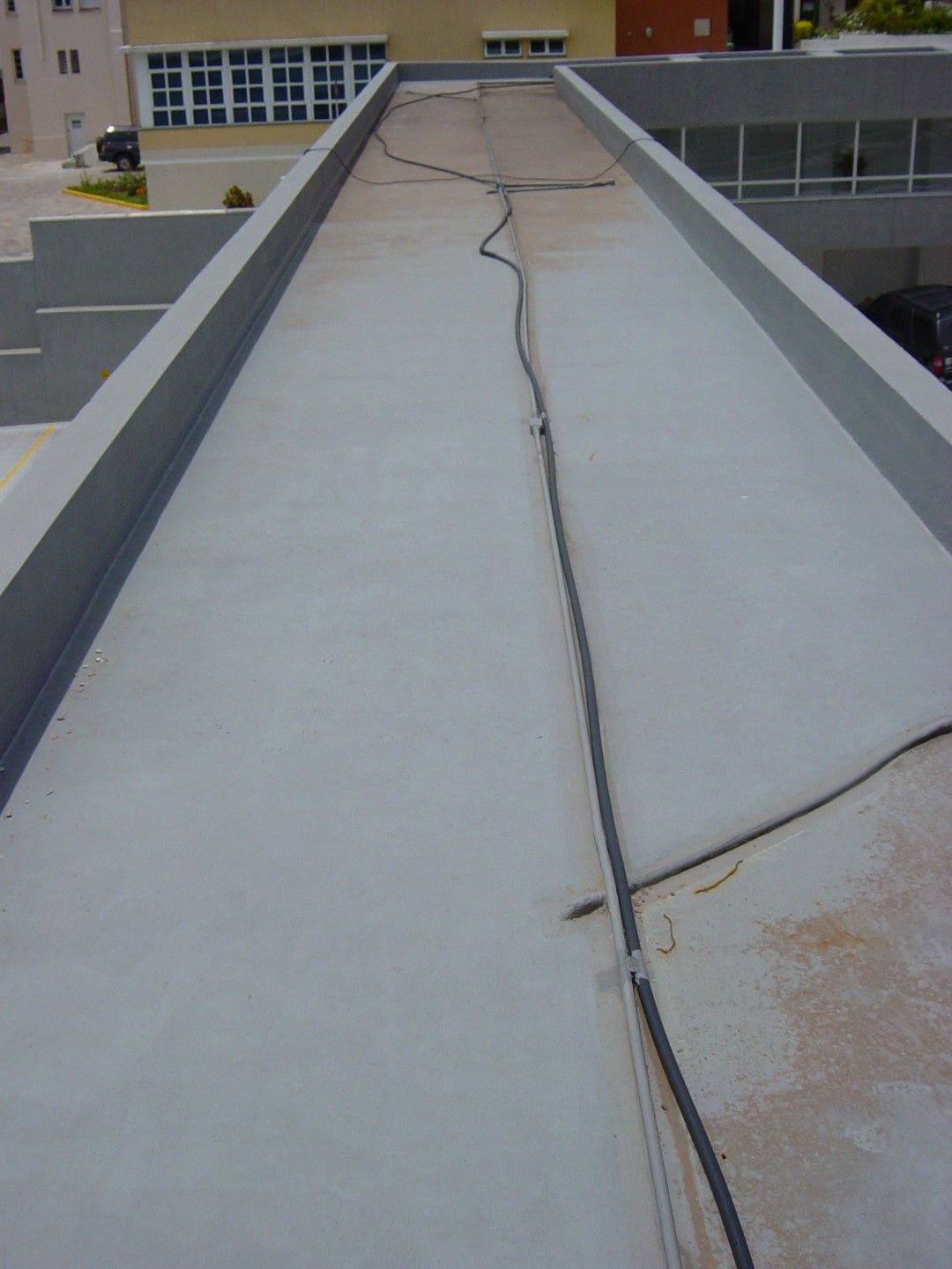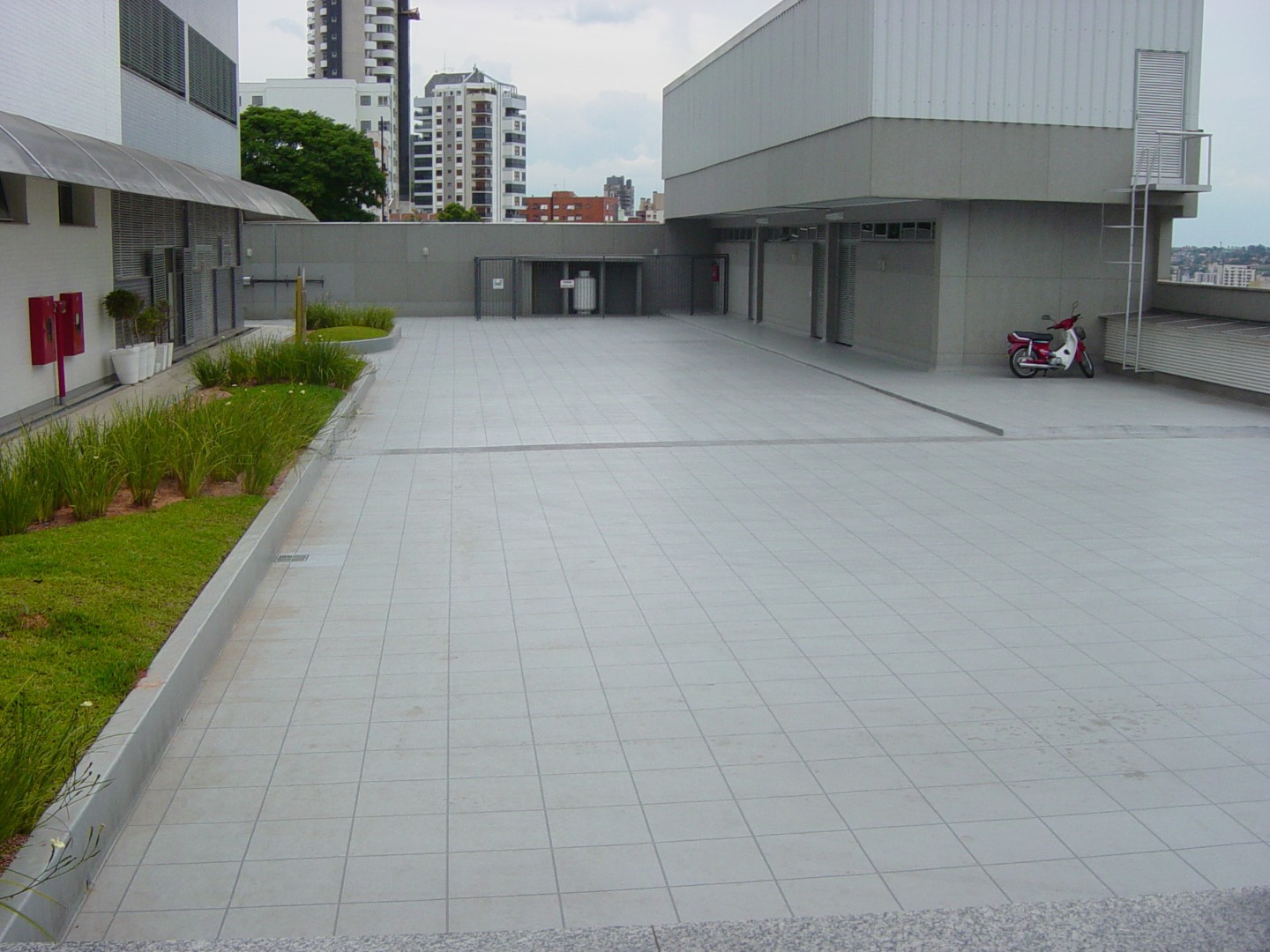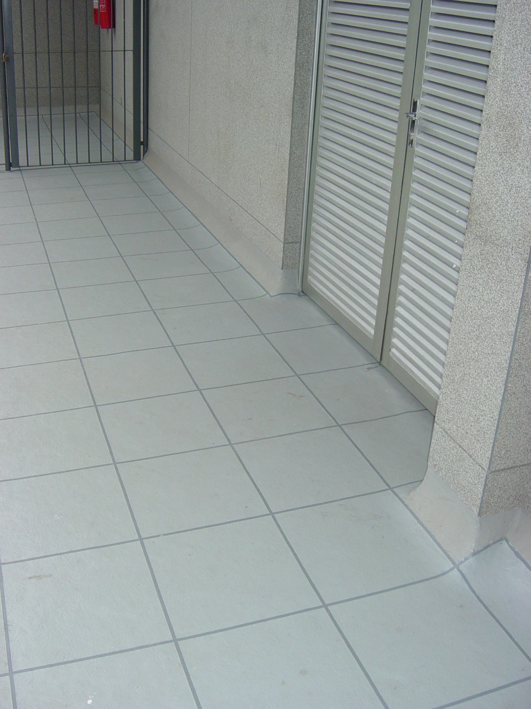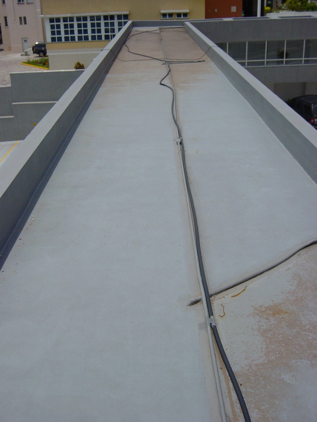 Rampa de garagem também foi impermeabilizada em tons de cinza