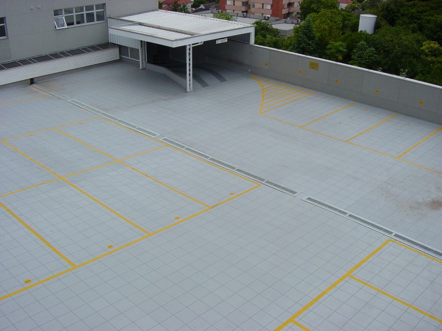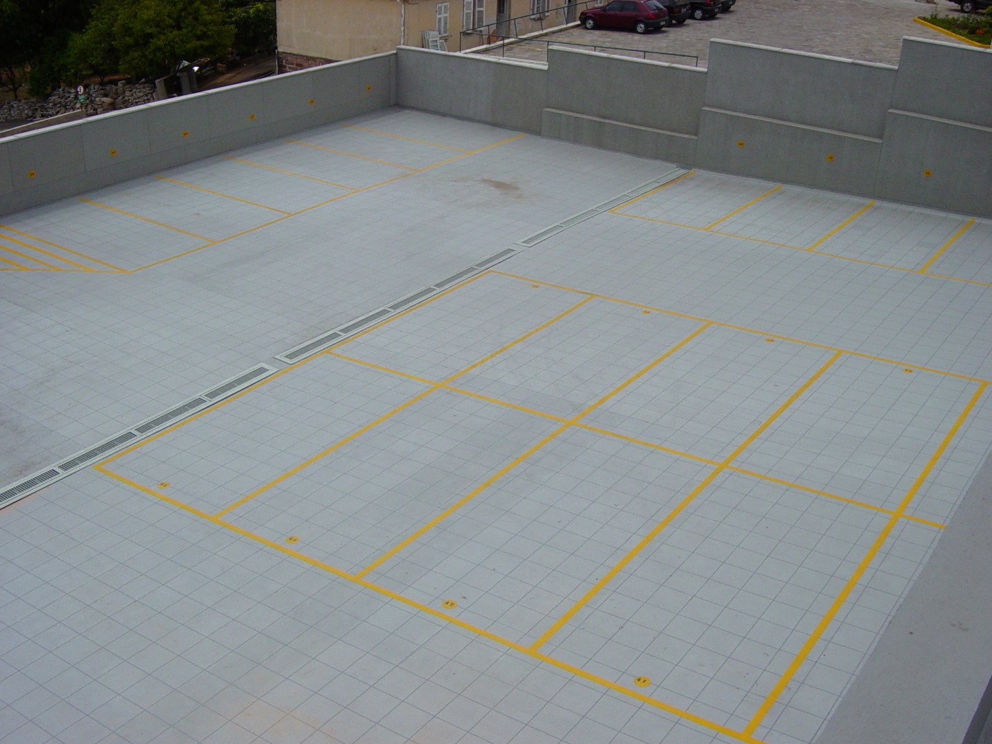 Estacionamento em Novo Hamburgo – RS com vagas demarcadas no próprio acabamento da impermeabilização