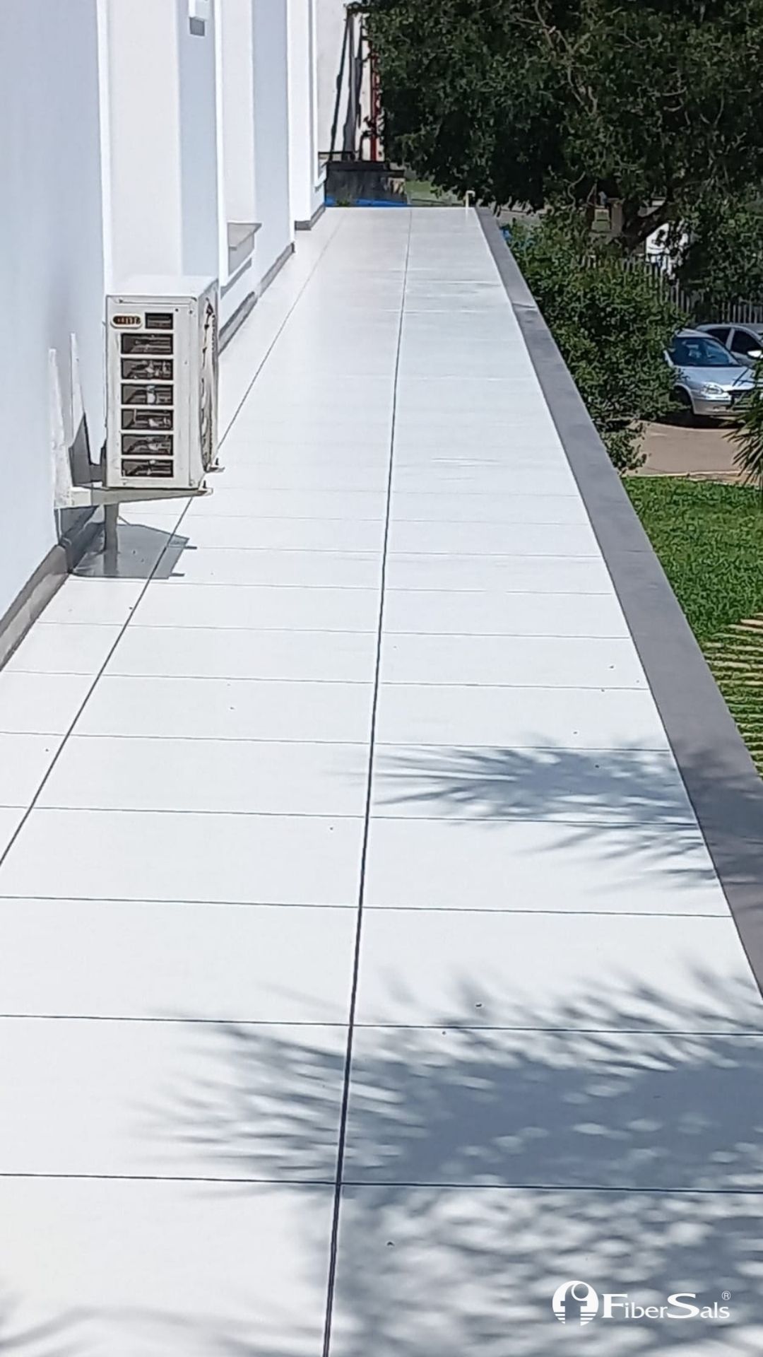 O acabamento do Sistema Fibersals é parte do próprio sistema e se funde quimicamente à camada estrutural. Tem resistência aos raios UV, às intempéries e ao tráfego de pessoas.