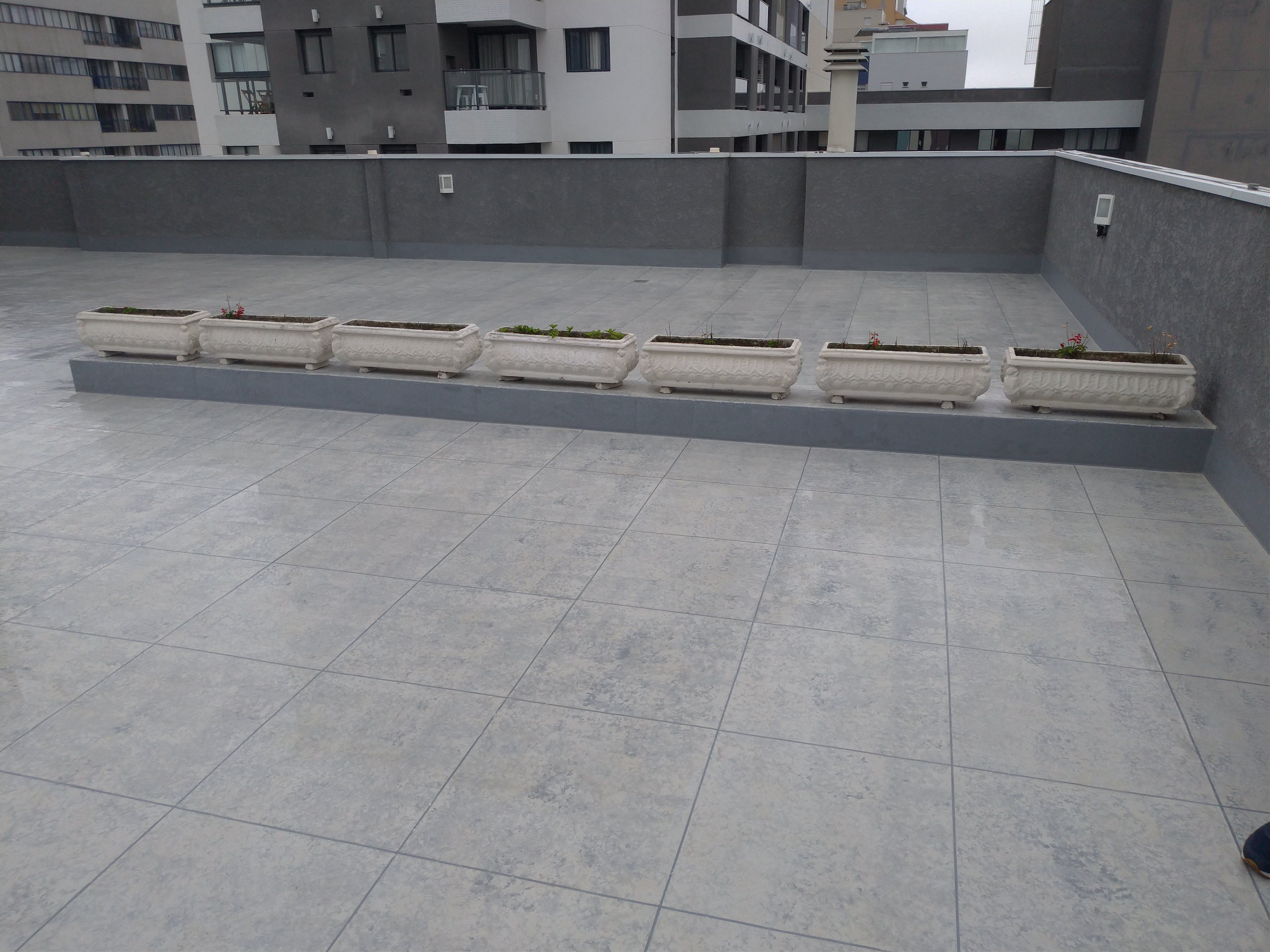 Passados mais de quatro anos desde a realização da impermeabilização, voltamos a visitar este belíssimo condomínio (quando tomamos as imagens abaixo), e encontramos o terraço impecavelmente mantido, com todo o cuidado da síndica e de sua equipe, e com uma impermeabilização que “parece ter sido feita ontem”.