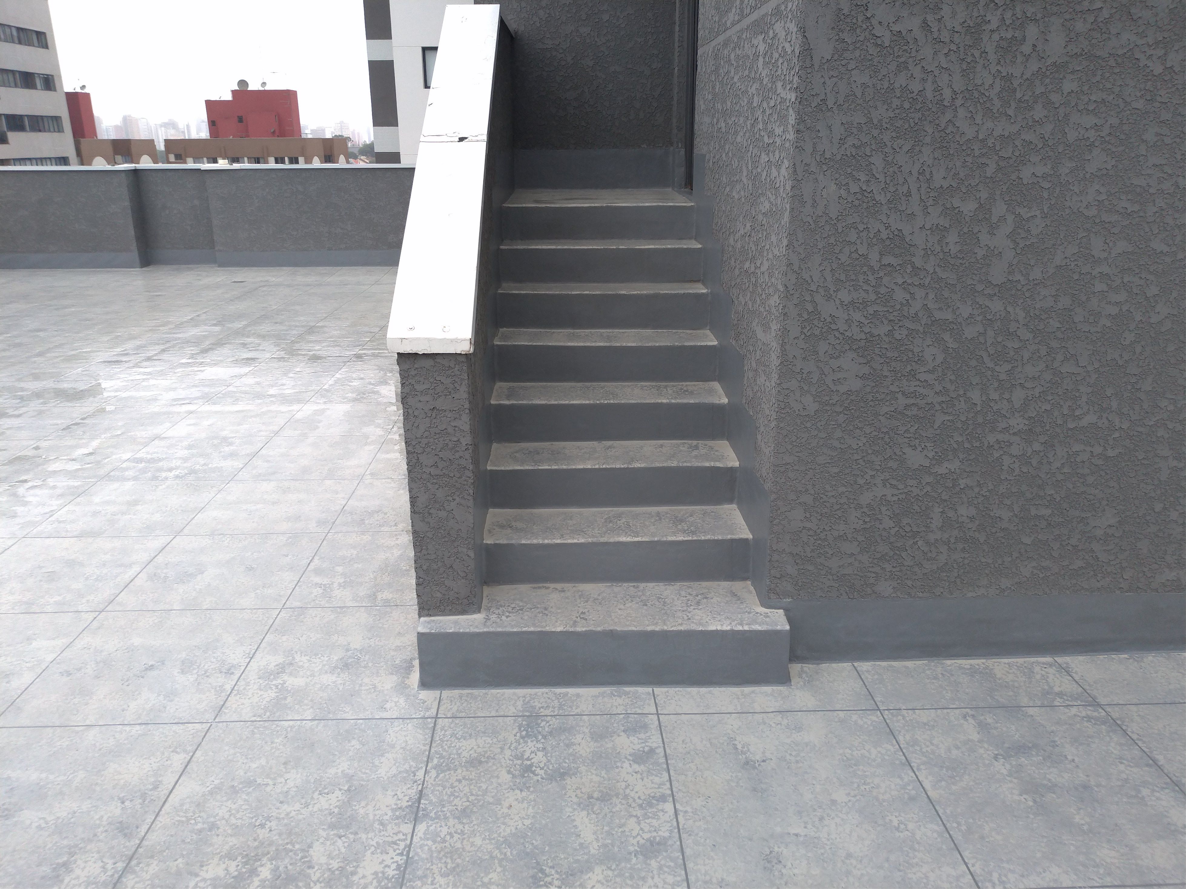 A escada de acesso também foi impermeabilizada seguindo o mesmo padrão.