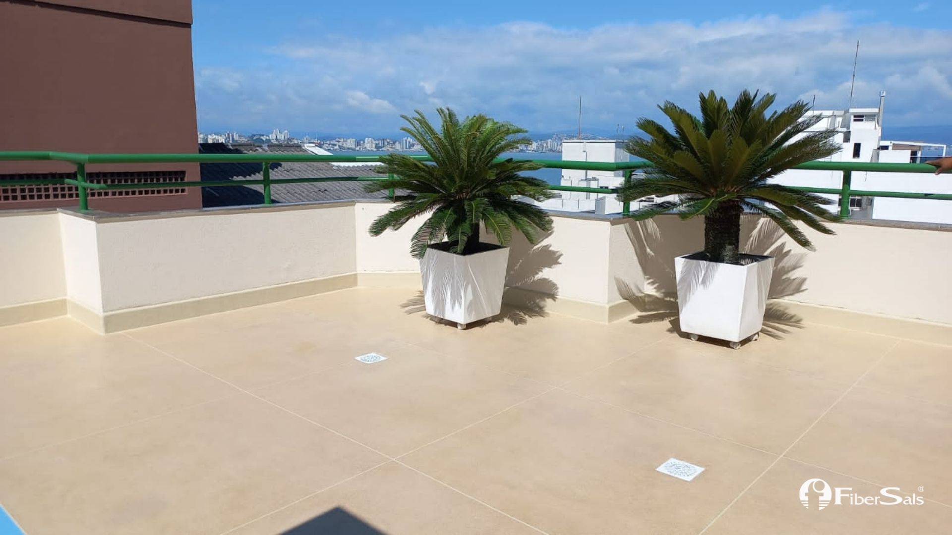 Áreas à beira-mar, como o caso deste condomínio, se beneficiam, ainda, das propriedades anticorrosivas da impermeabilização, que é resistente à maresia. Além disso, o sistema apresenta resistência aos raios UV, às intempéries e ao tráfego de pessoas, características essenciais para a impermeabilização de terraços.