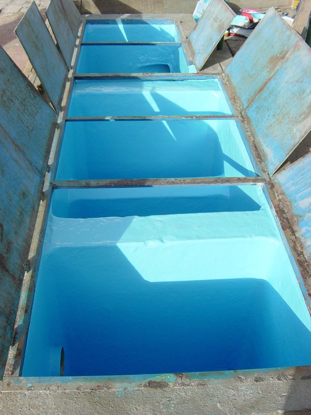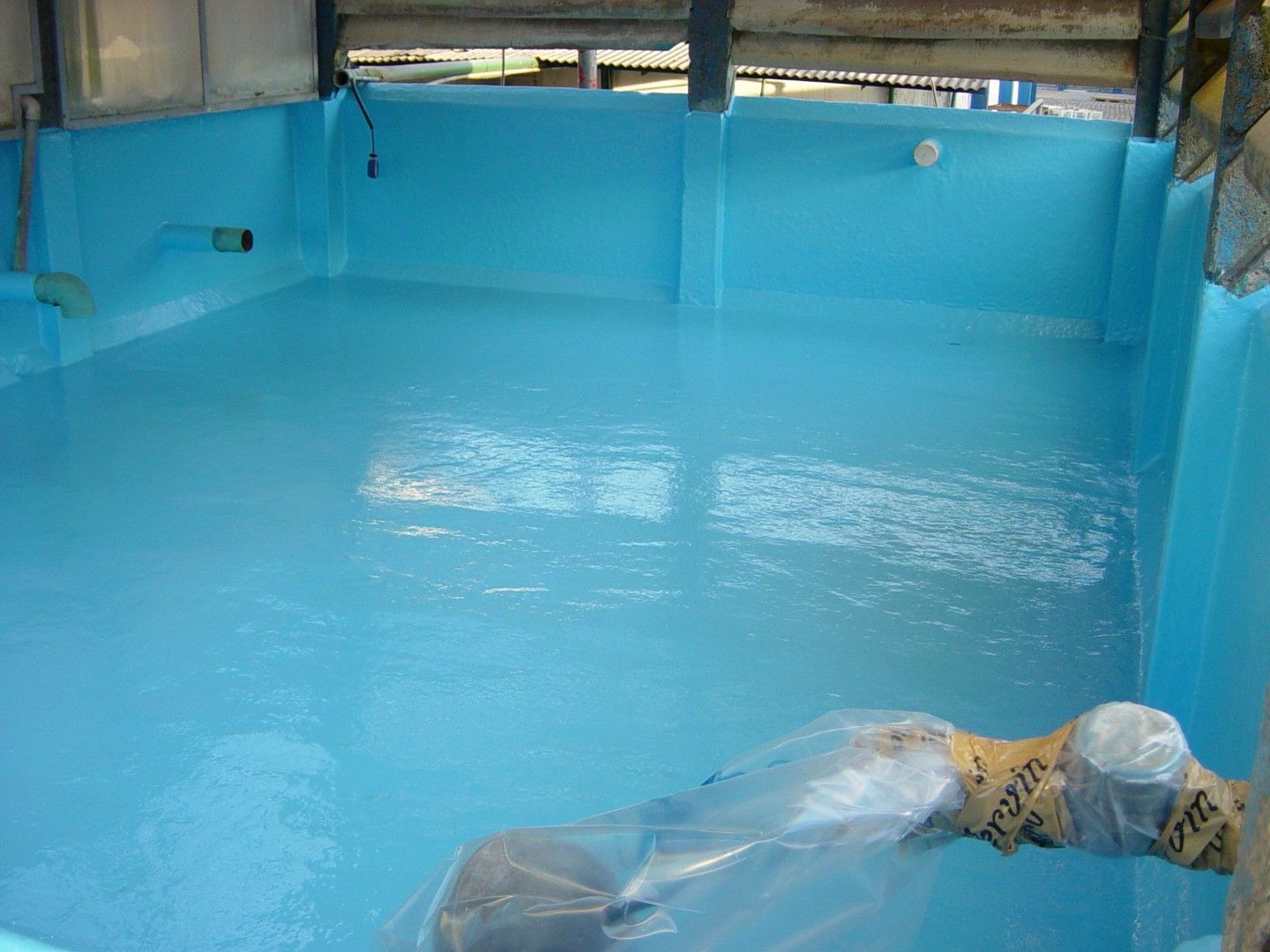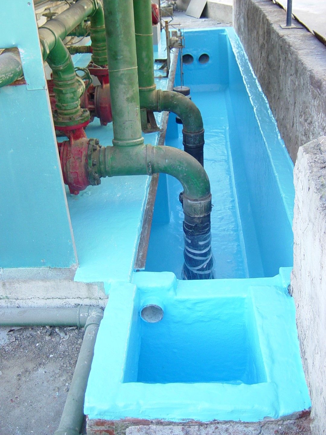 Como é um sistema moldado in loco, é possível envelopar as estruturas existentes, impermeabilizando fundo e paredes internas de tanques, e também bases de máquina, encontros com tubulação, entre outros.