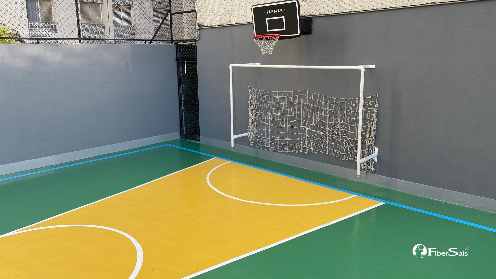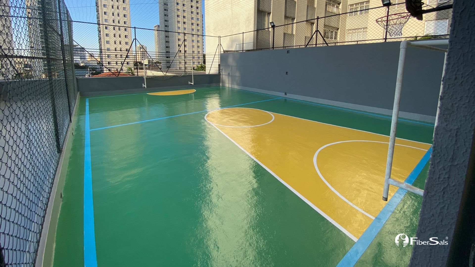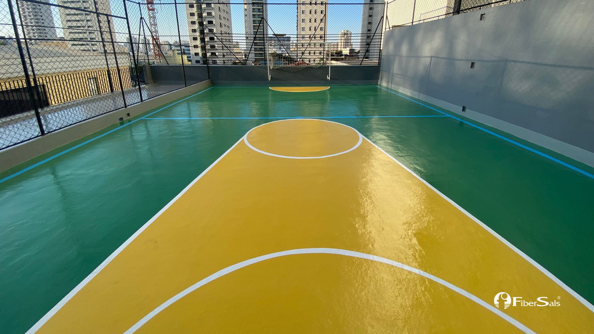 O Sistema Fibersals foi aplicado em piso e rodapés da quadra poliesportiva do condomínio