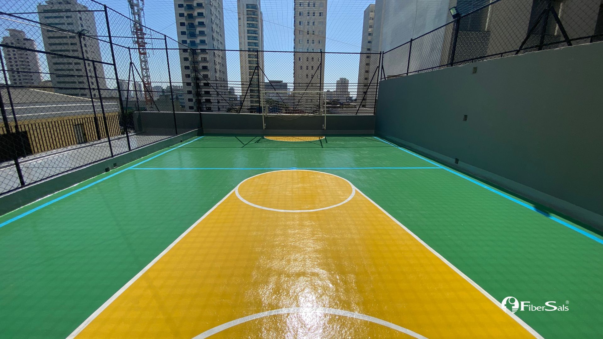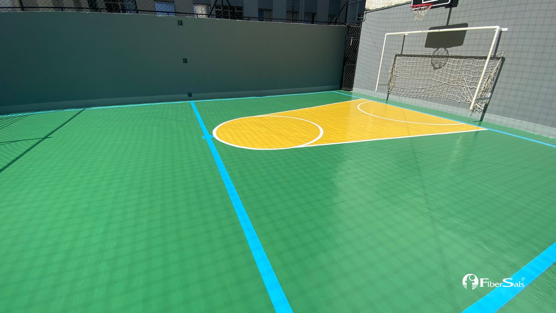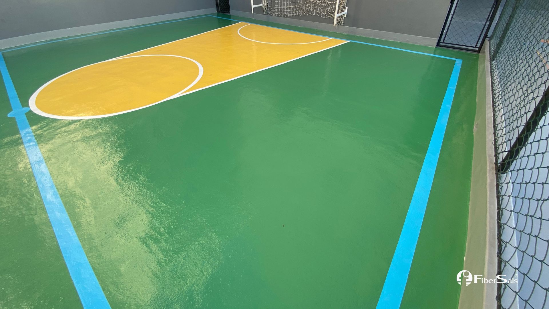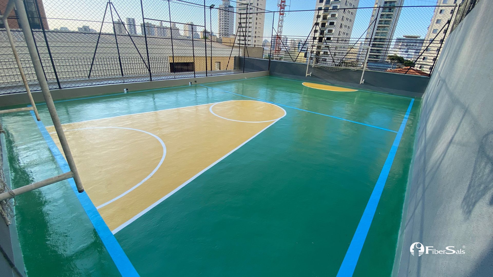 O Sistema Fibersals foi aplicado em piso e rodapés da quadra poliesportiva do condomínio