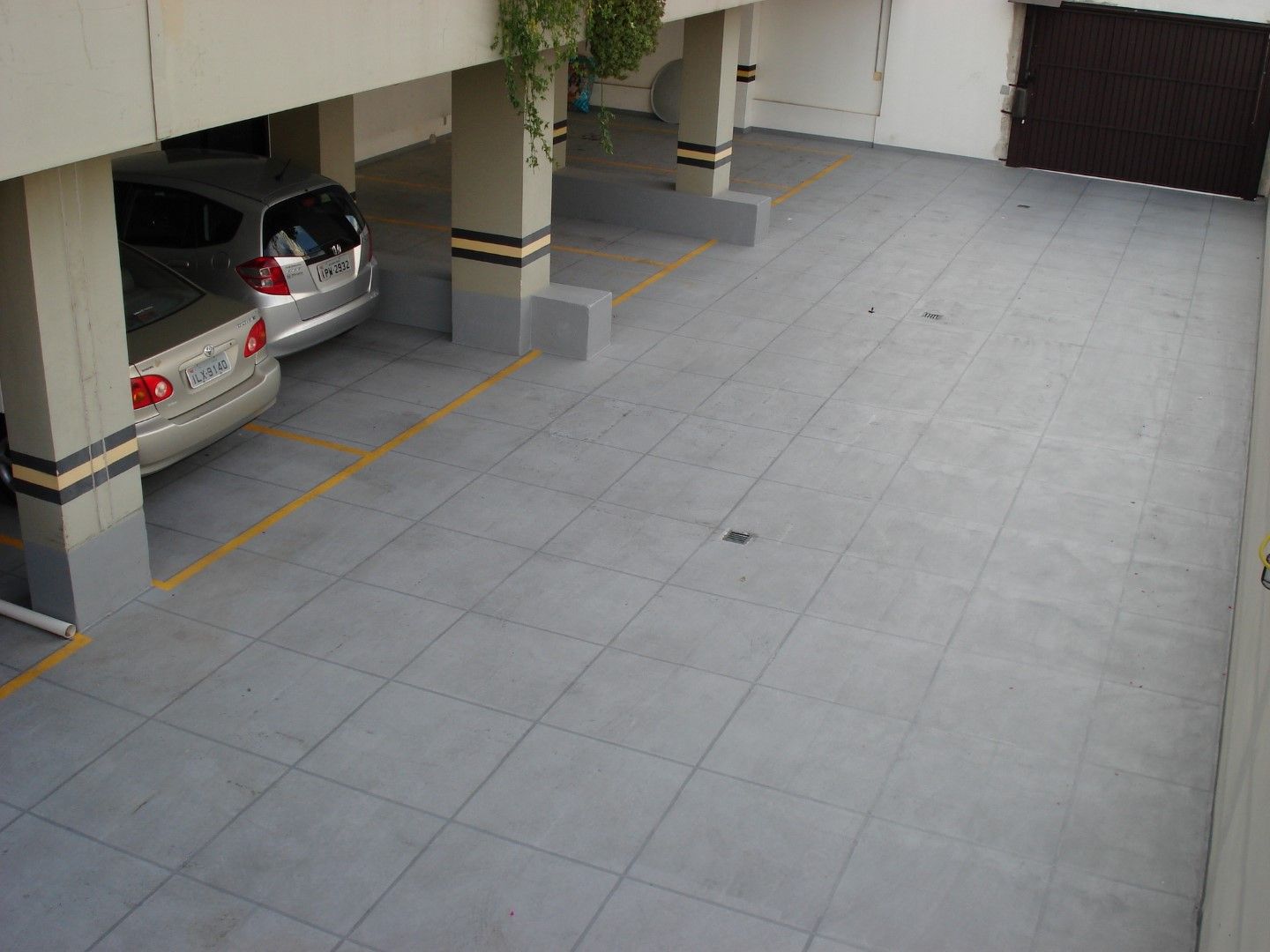 A garagem recebeu impermeabilização com acabamento em cor sólida e marcação das vagas na cor amarela, feitas já no próprio sistema. O sistema Fibersals é extremamente resistente ao tráfego intenso de veículos, o que o torna perfeito para este tipo de aplicação.