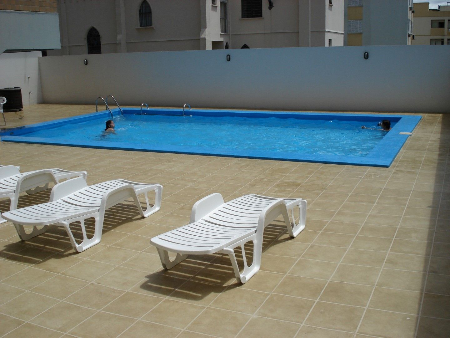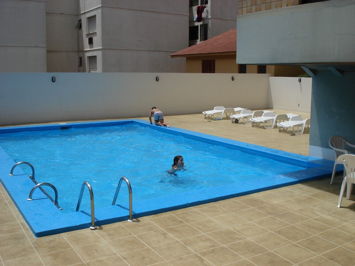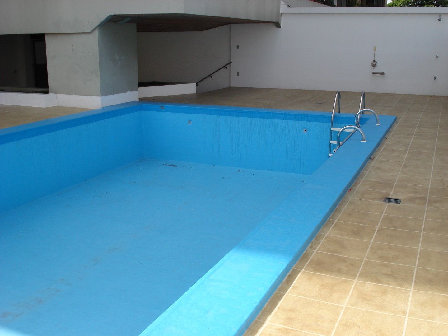 A piscina recebeu acabamento em cor única azul e está livre da infiltrações.