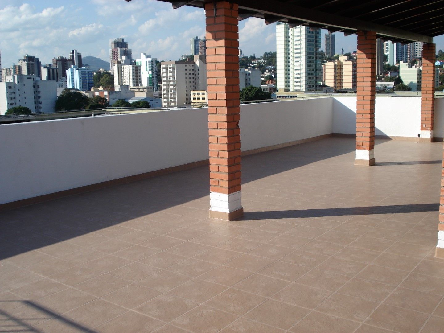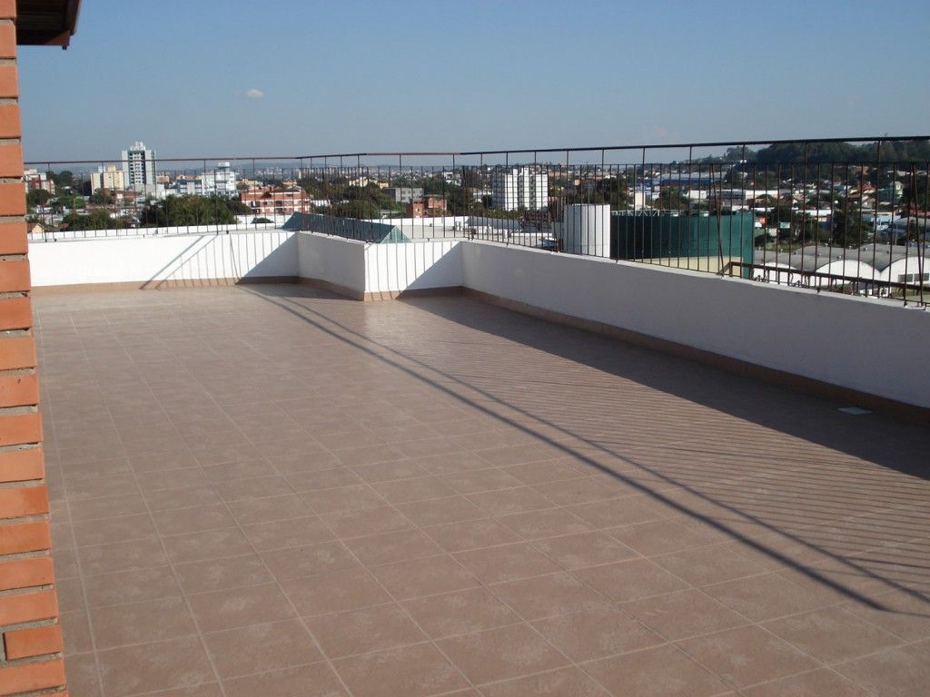 Este terraço do Condomínio e Edifício Palácio dos Deuses, em Novo Hamburgo – RS, recebeu impermeabilização definitiva com acabamento imitando cerâmica mesclada, com diferenciação de rejunte.