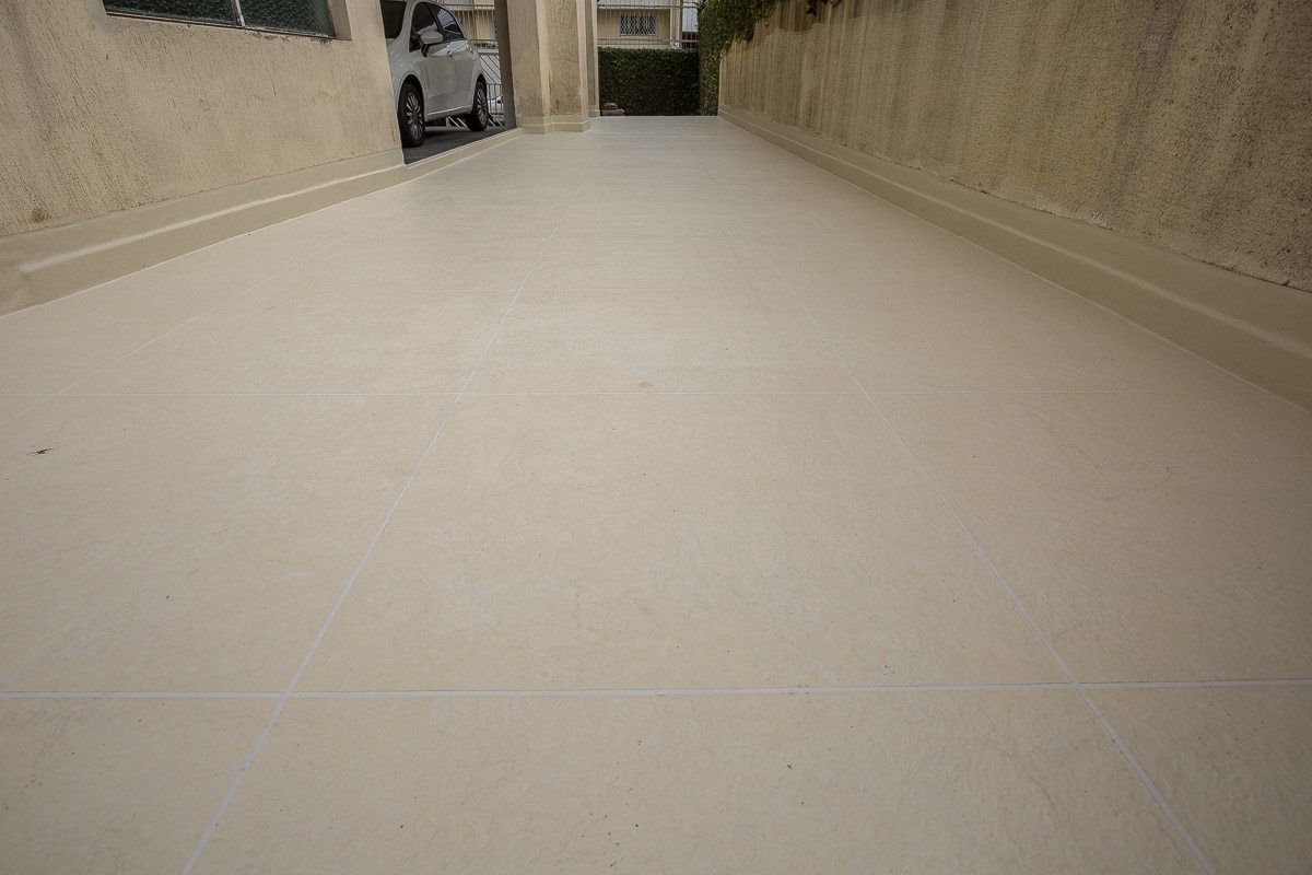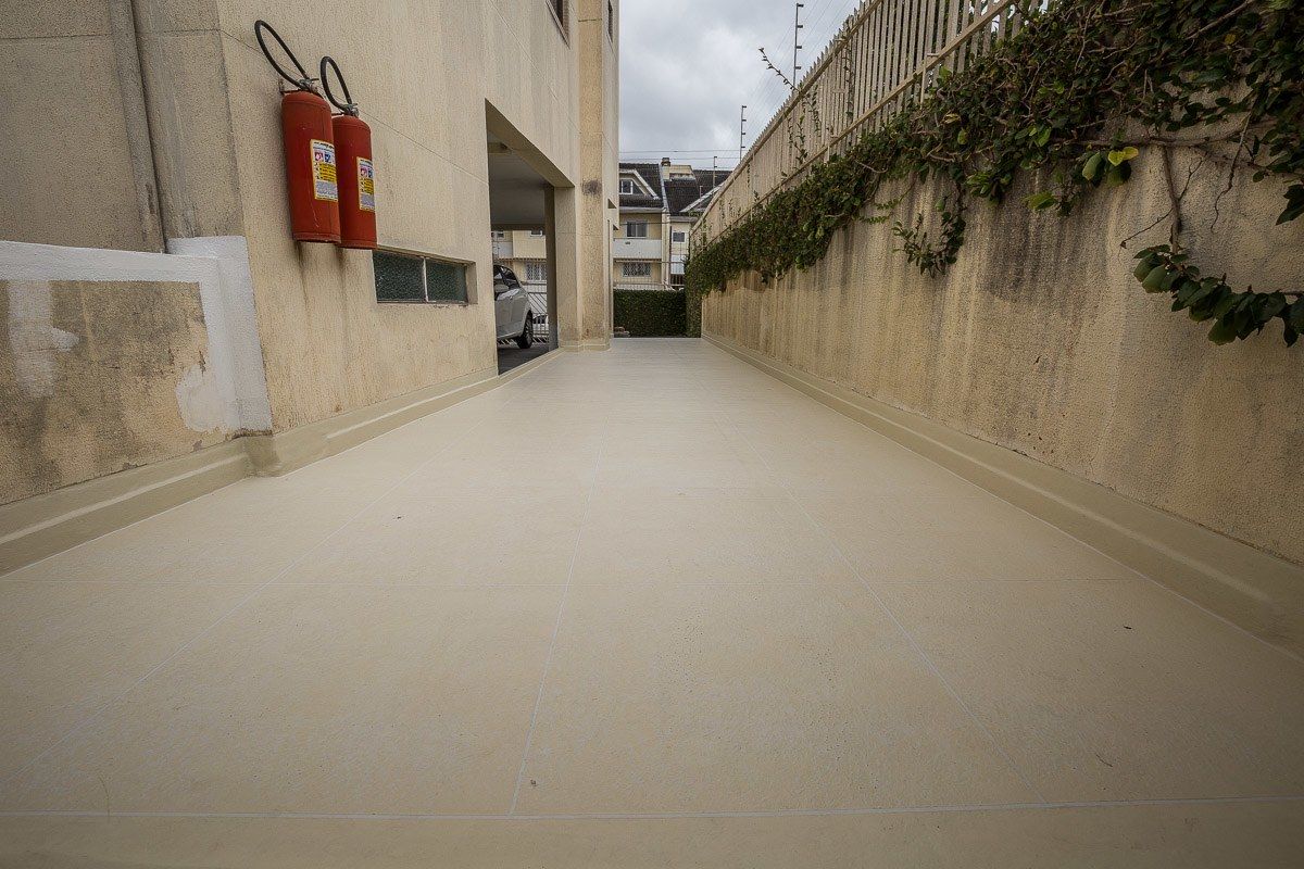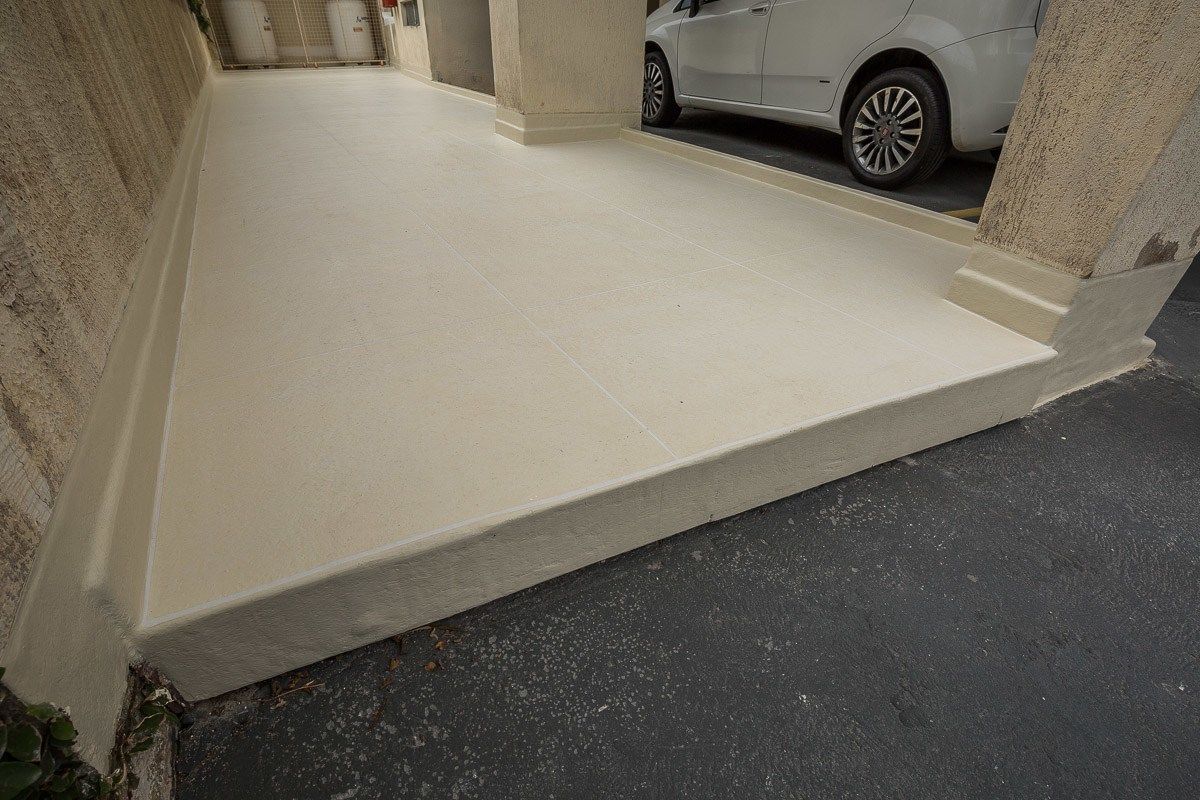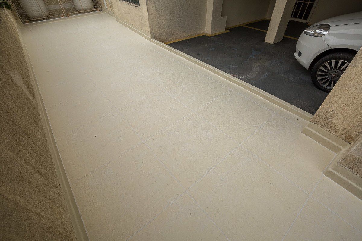 Piso impermeabilizado próximo ao estacionamento do condomínio
