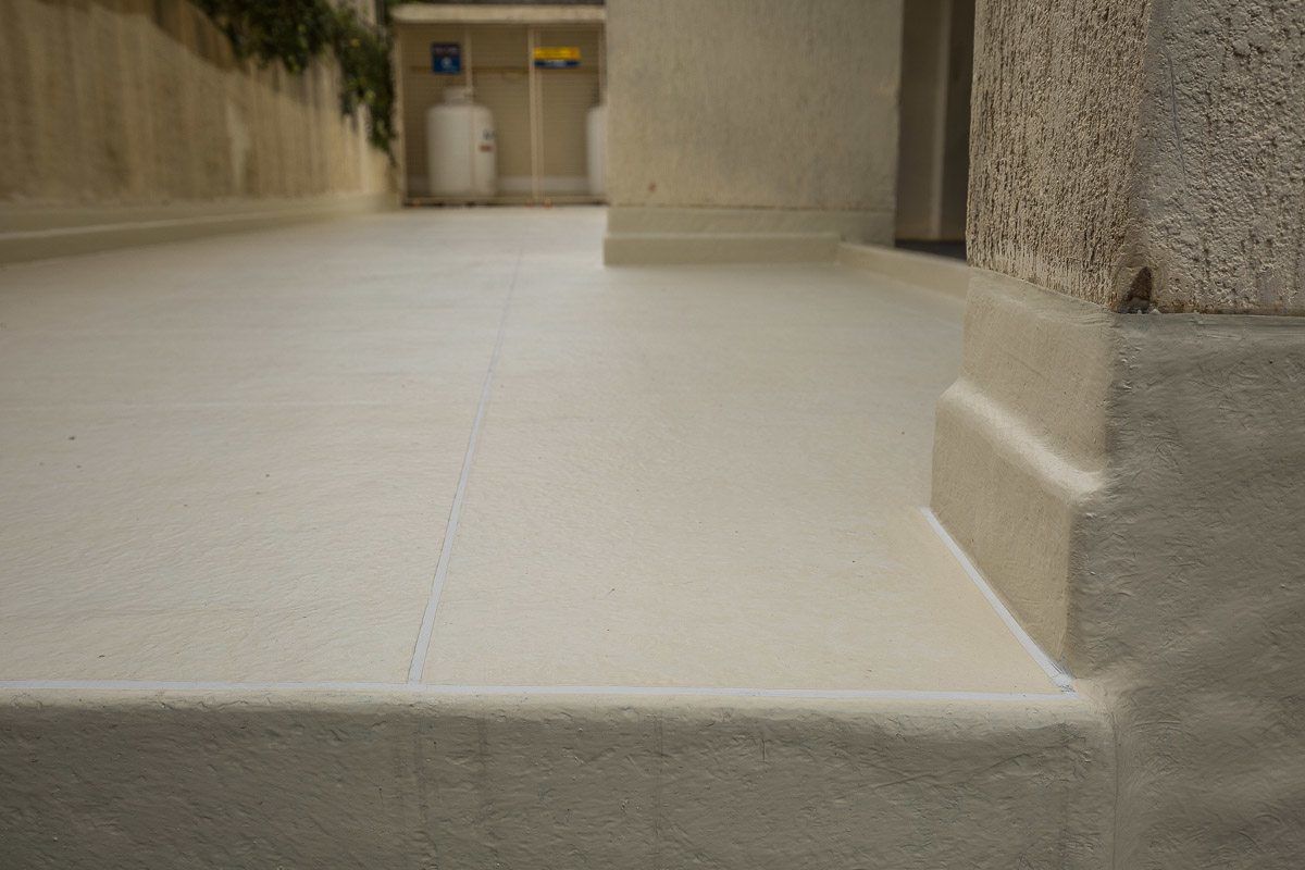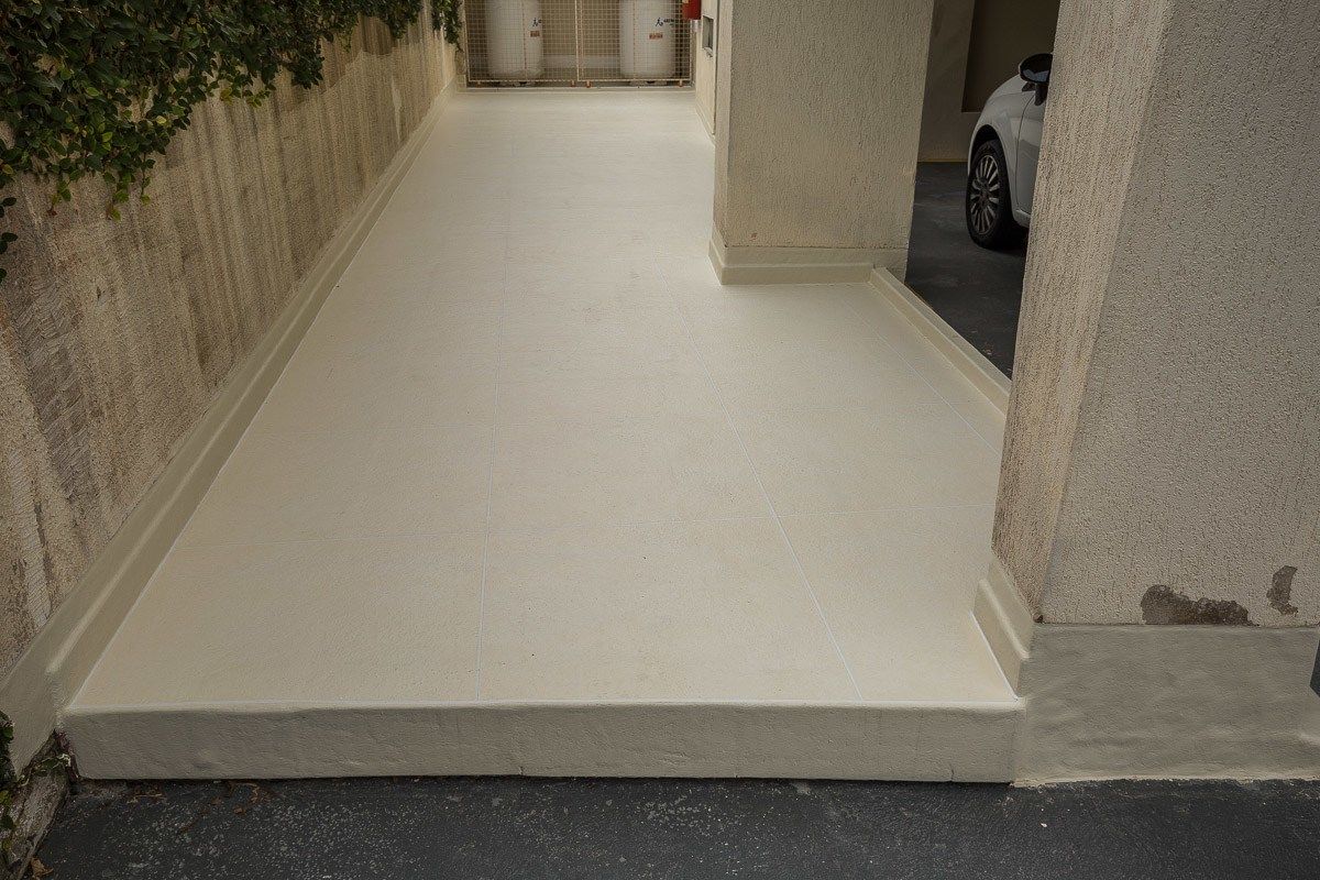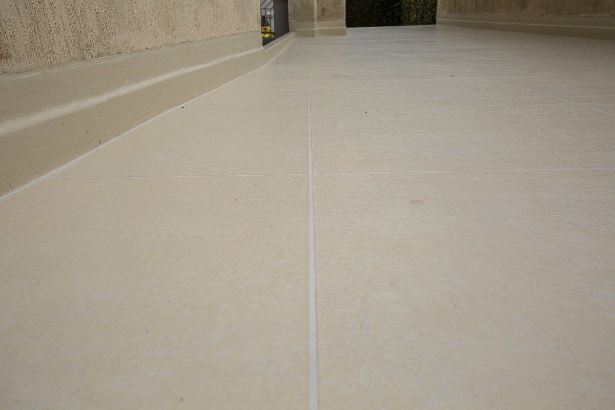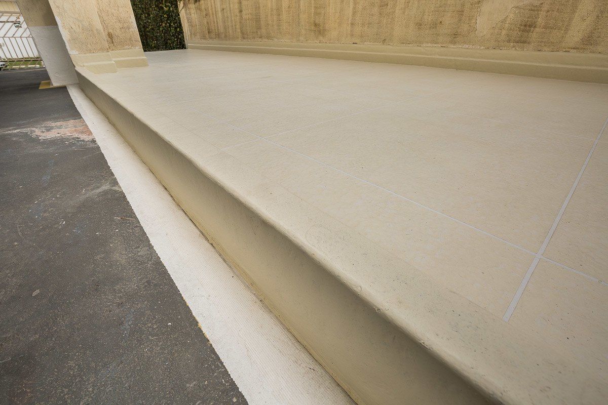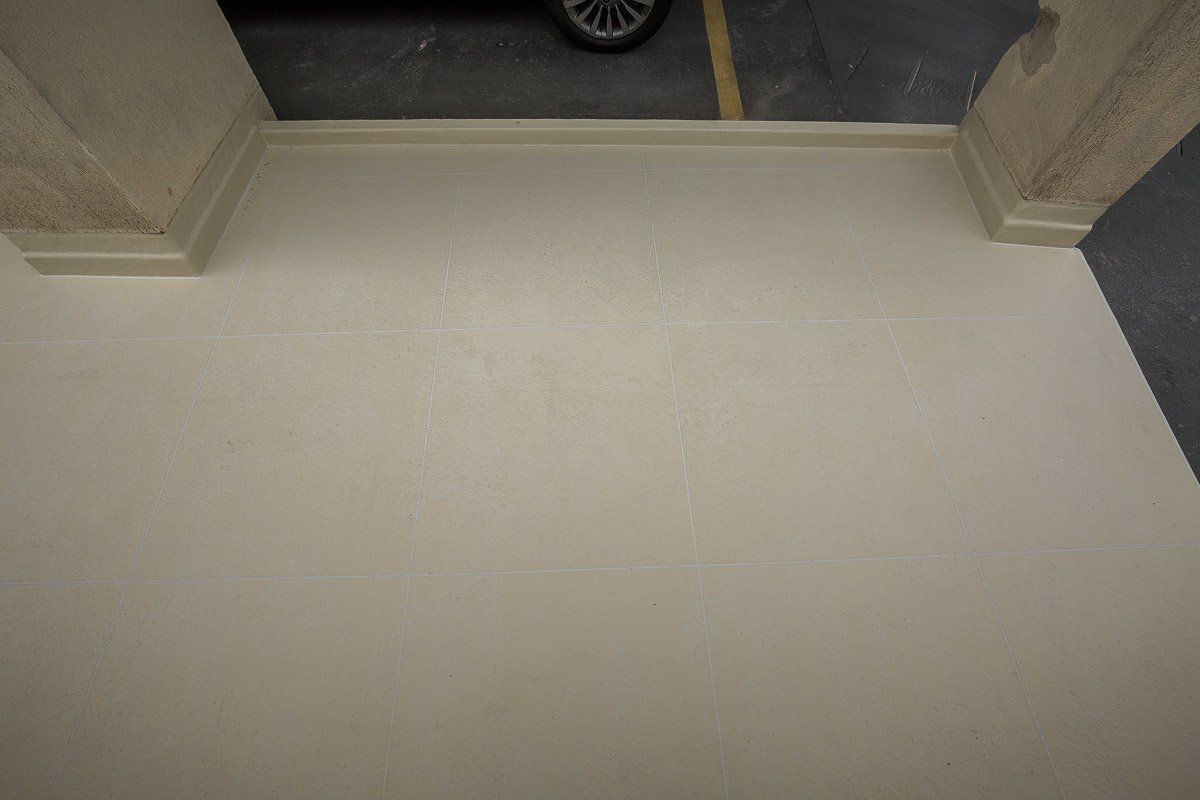 Piso impermeabilizado próximo ao estacionamento do condomínio