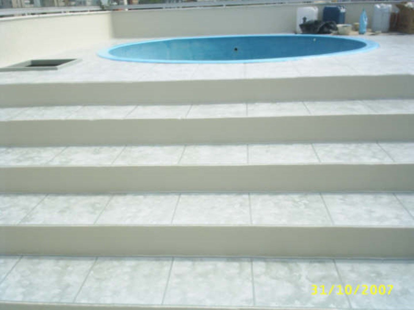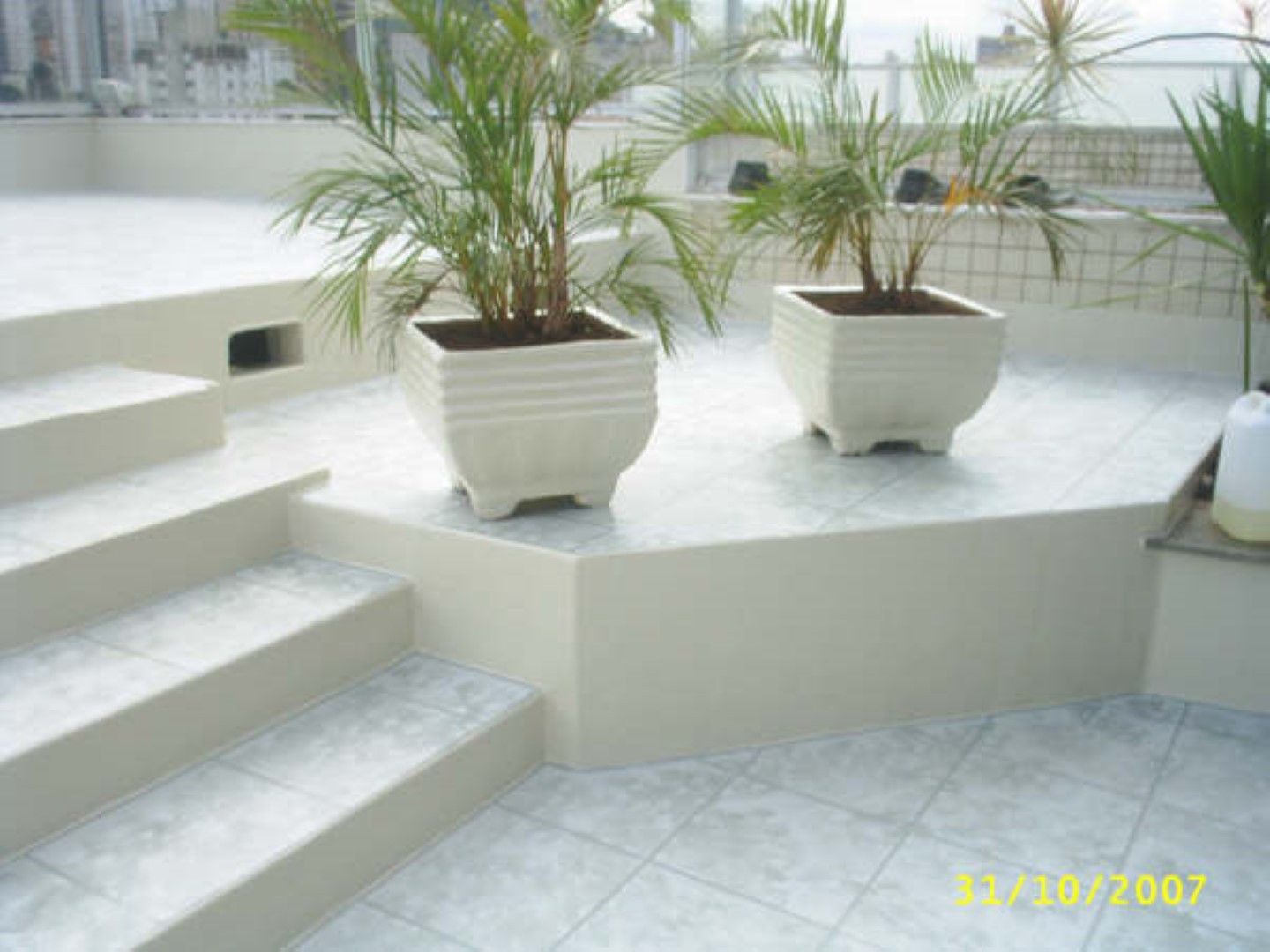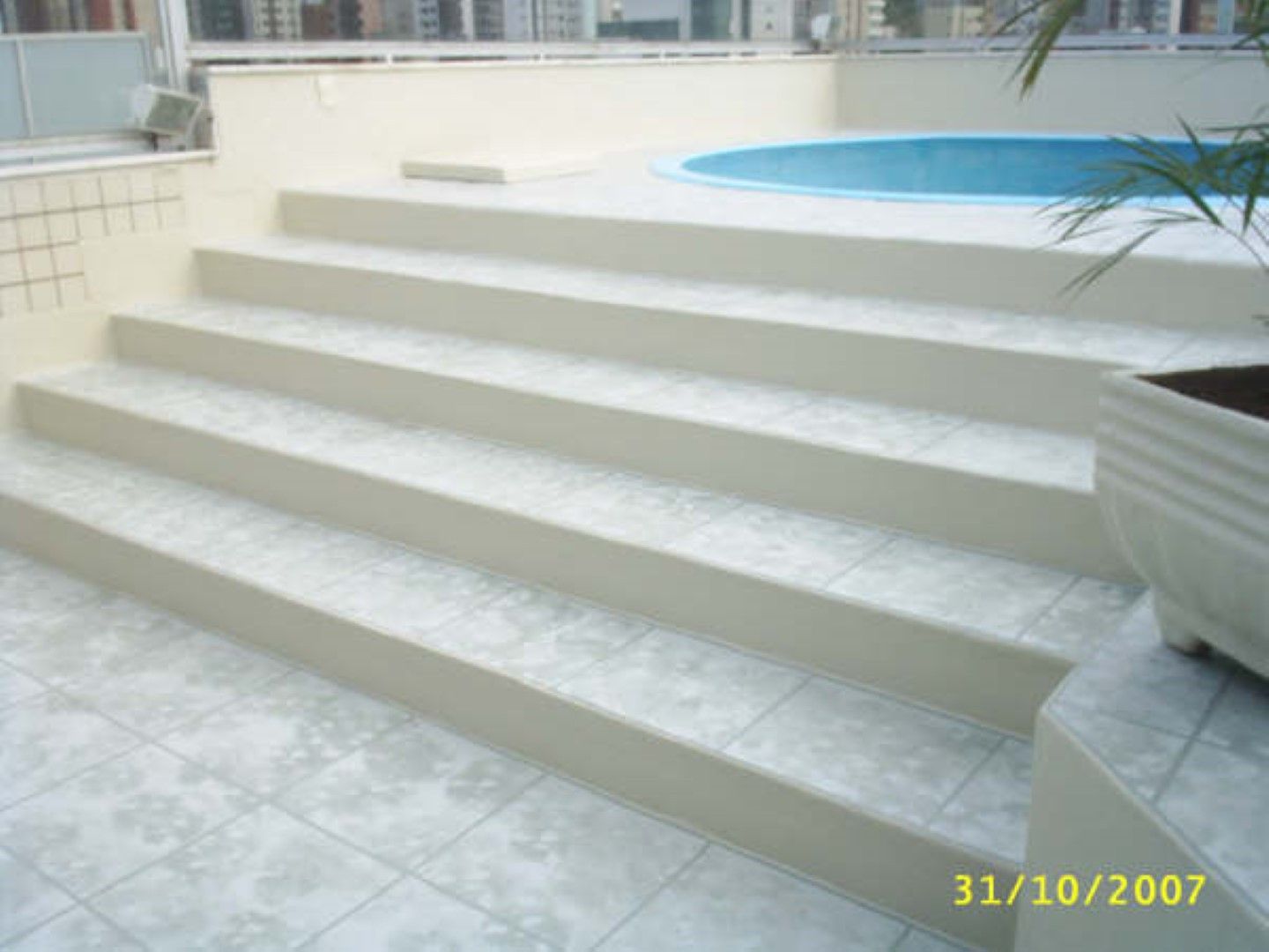 O cliente escolheu acabamento imitando cerâmica, com diferenciação do rejunte, acabando definitivamente com os vazamentos e renovando o visual da área impermeabilizada pela Fibersals.