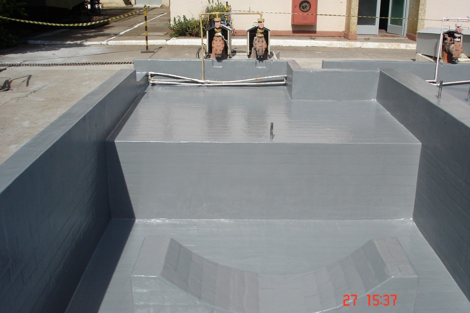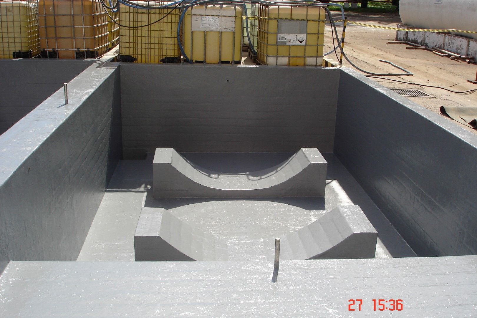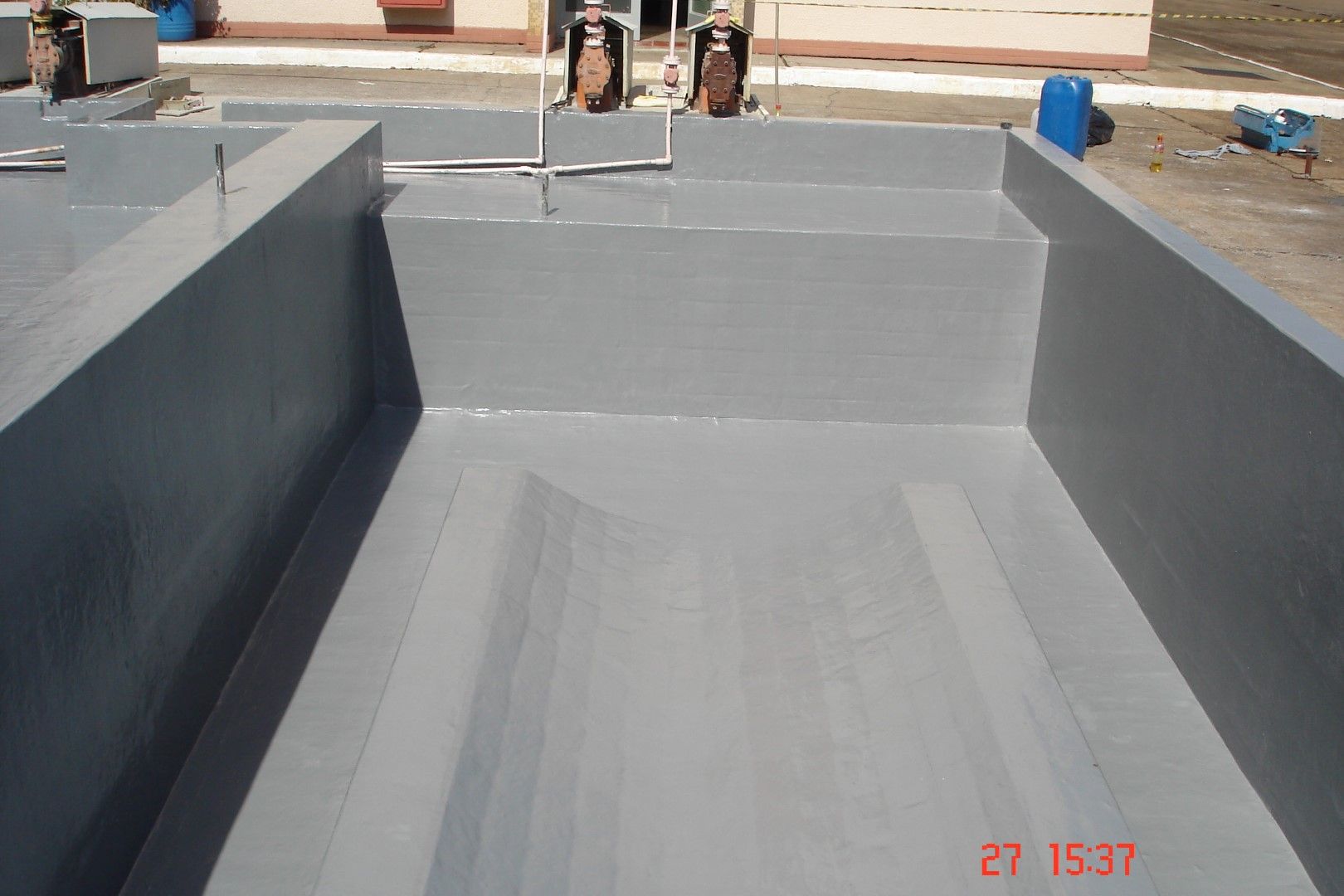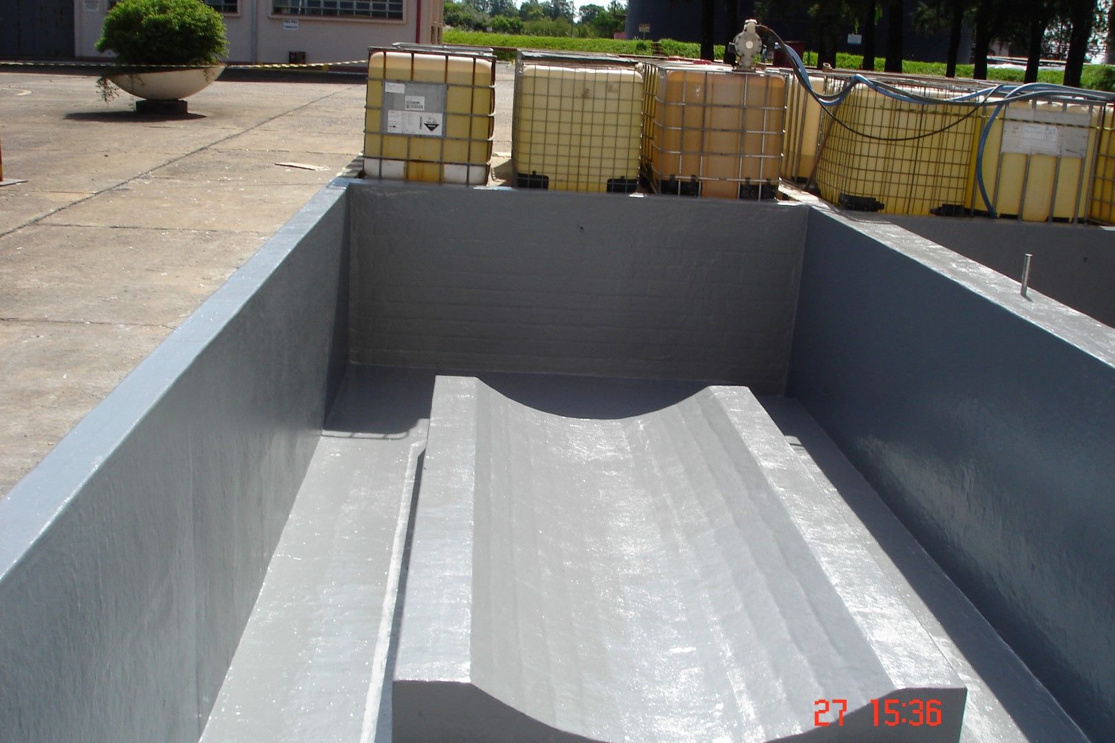 A Fibersals foi contratada para realizar a impermeabilização em todo o piso e paredes internas da bacia de contenção que abriga este compartimento metálico e extinguir o risco de contaminação do solo.